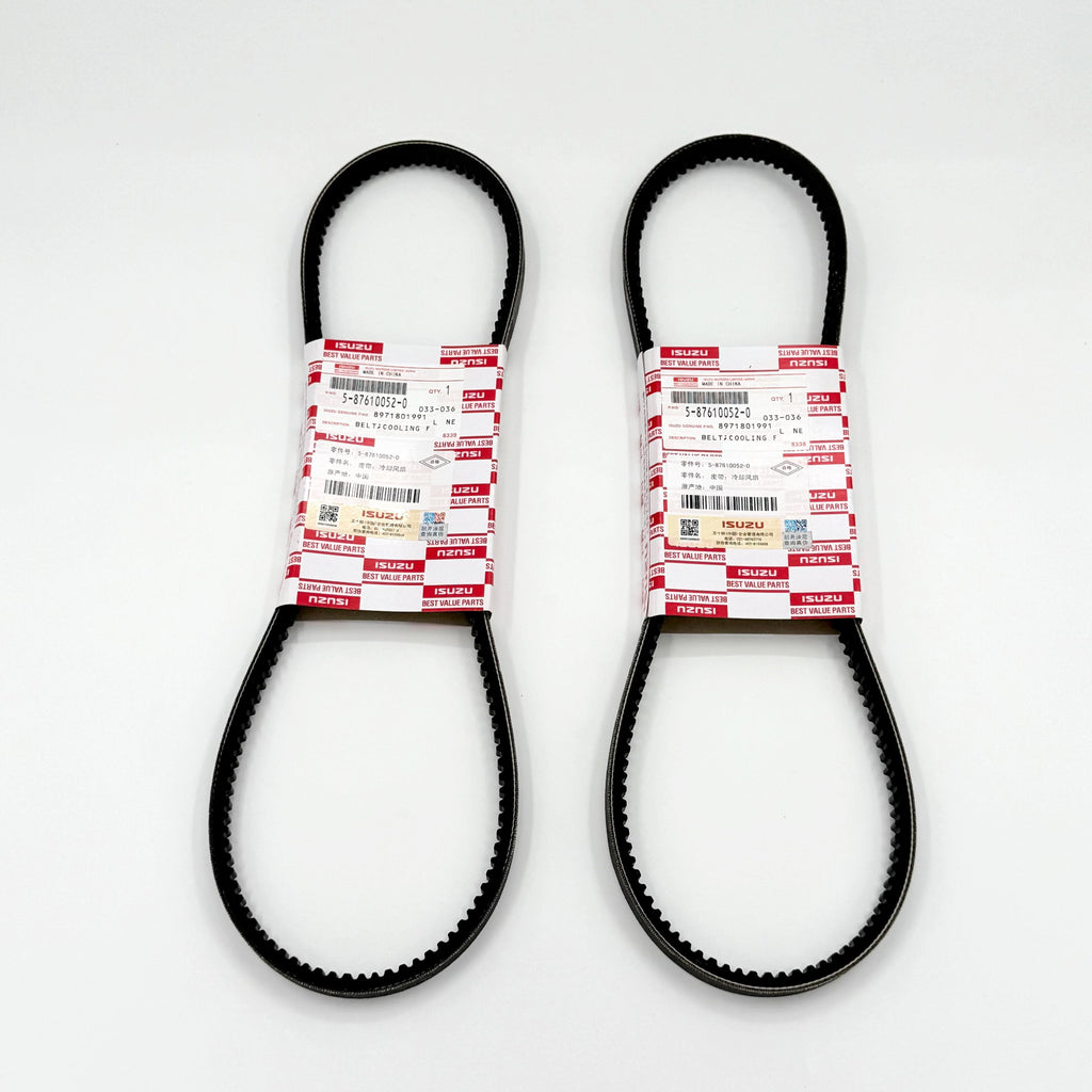 Keep your Isuzu truck running smoothly with this essential pair of OEM cooling fan belts. Specifically designed for ISUZU NPR, NQR, and NRR models from 1998-2007 with 4HG1T 4.6L, 4HE1 4.8L, and 4HK1 5.2L engines. These OEM belts are precision-engineered to ensure optimal engine cooling performance. The heavy-duty construction features a durable rubber compound and reinforced teeth pattern for reliable power transmission and extended service life. These belts maintain proper tension to drive the cooling fan efficiently, helping prevent engine overheating during demanding operations. The exact fit ensures proper alignment and quiet operation, while the premium materials resist cracking, stretching, and wear. Regular belt replacement as part of preventive maintenance helps avoid costly downtime and extends engine life. Each pack includes two belts to maintain your vehicle's cooling system at peak efficiency.