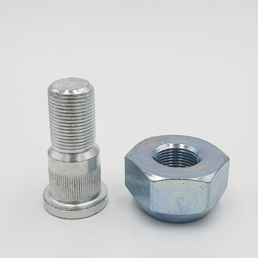 Keep your vehicle's wheels securely attached with this essential set of 6 wheel studs and nuts designed specifically for ISUZU NPR, NQR, NPR-HD, and NRR models from 1998-2025. These heavy-duty components are manufactured from high-strength steel with zinc plating for superior durability and corrosion resistance. The package includes matching pairs of studs and nuts for the front left driver side installation. The precision-engineered threading ensures proper fitment and reliable performance under demanding conditions. These replacement parts maintain the original equipment specifications, making them perfect for both routine maintenance and necessary repairs. The nuts feature a flanged design for enhanced load distribution and secure mounting. Regular inspection and replacement of worn wheel studs and nuts is crucial for vehicle safety and optimal performance.