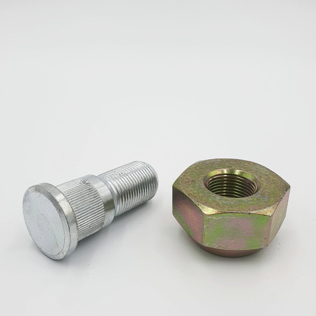 Upgrade your ISUZU NPR, NQR, NPRHD, or NRR with this essential wheel hardware kit for the front right passenger side. The set includes 6 precision-engineered wheel studs paired with their matching nuts, designed specifically for 1998-2025 models. The studs feature a zinc-plated finish for corrosion resistance, while the nuts are crafted from high-grade steel with a yellow zinc dichromate coating for enhanced durability. These components are manufactured to exact specifications to ensure proper fitment and optimal wheel security. Each stud and nut combination is designed to maintain proper torque specifications, crucial for safe vehicle operation. Perfect for replacement during routine maintenance or repairs, this kit provides everything needed to secure your wheel properly on the front right position.