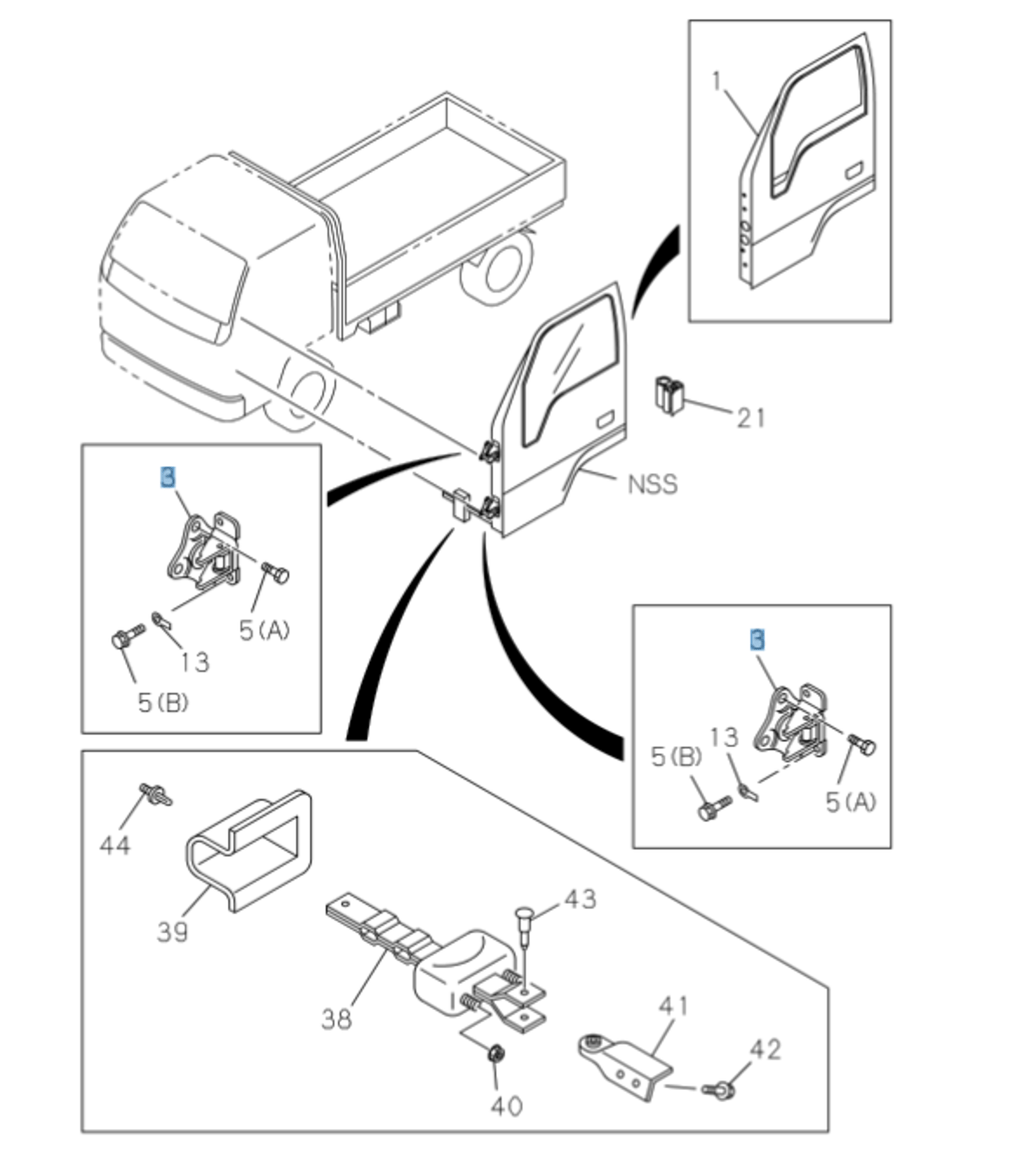This heavy-duty front door hinge is specifically designed for ISUZU NRR, NPR, NQR, and NPR-HD trucks manufactured between 1994-2007. Crafted from durable zinc-plated steel for superior corrosion resistance, this replacement hinge features a robust three-hole mounting design for secure installation. The precision-engineered pivot mechanism ensures smooth door operation while maintaining proper alignment. Perfect for fleet maintenance or individual repairs, this hinge comes with the exact specifications needed for a direct fit on your ISUZU commercial truck. The industrial-grade construction provides long-lasting performance under demanding conditions, making it an essential component for maintaining your vehicle's door functionality. Compatible with both left and right-side doors, this replacement part helps restore your truck's door operation to factory standards.