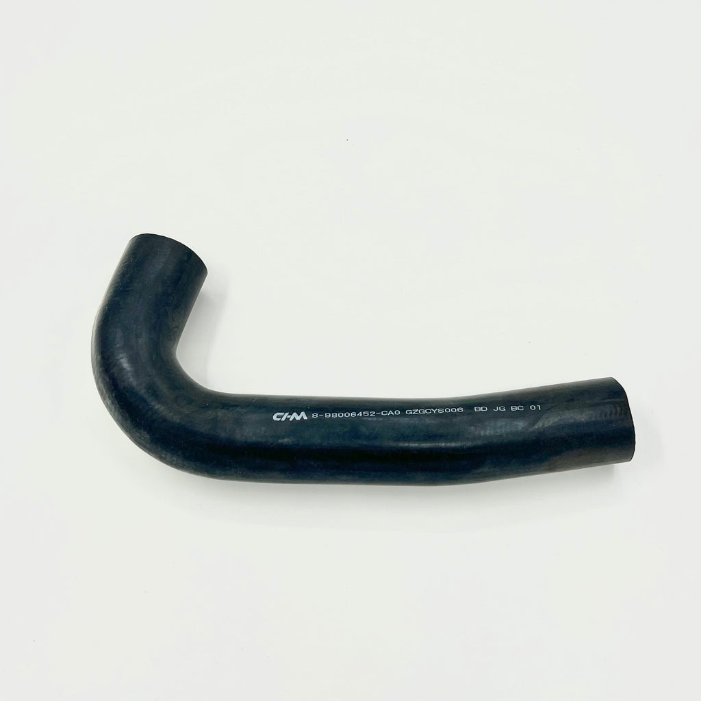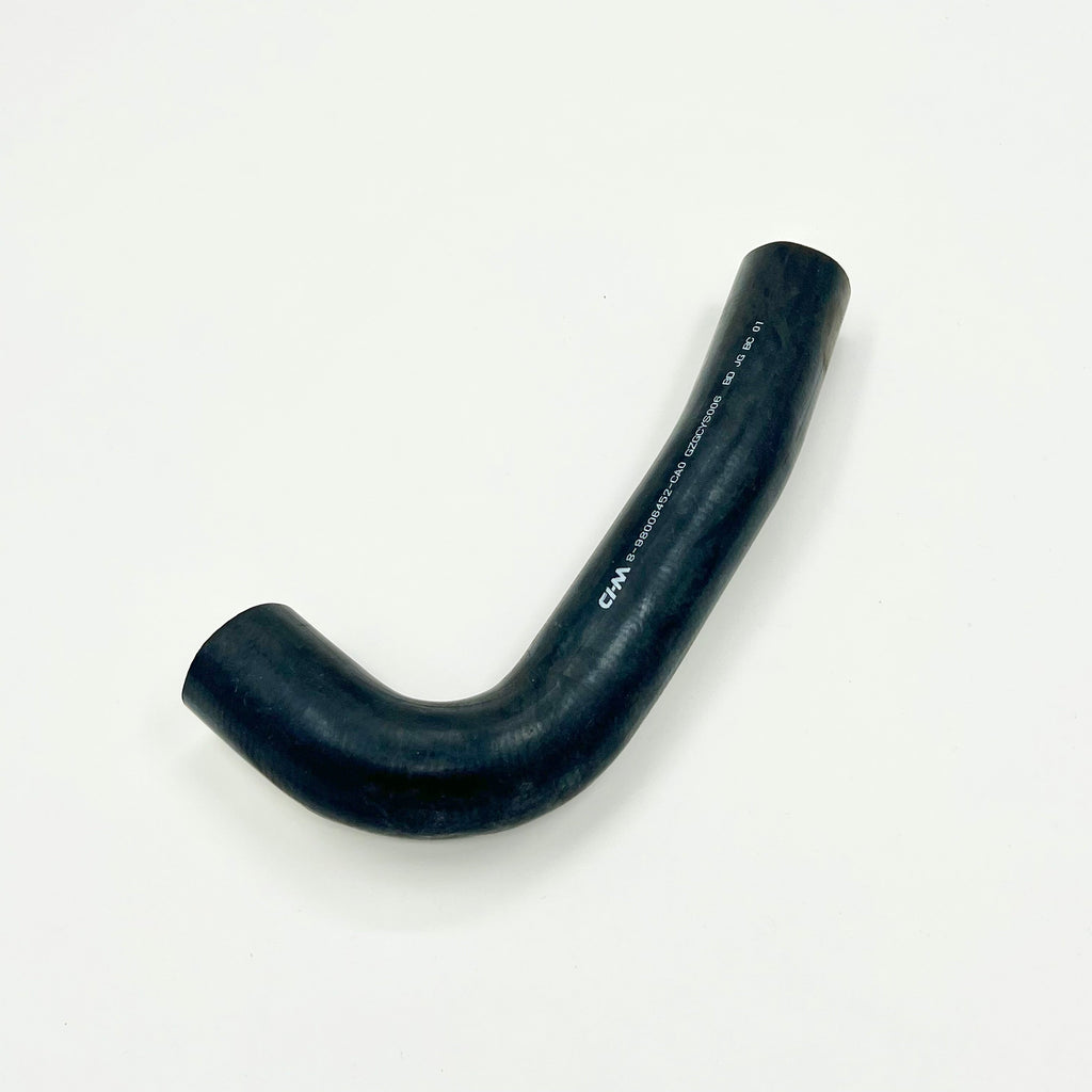 This premium radiator coolant inlet upper hose is specifically designed for ISUZU NRR, NPR, NPR-HD, and NQR models equipped with the 5.2L 4HK1 engine from 2005-2013. The heavy-duty black rubber construction ensures reliable coolant flow and excellent heat resistance for optimal engine cooling performance. This curved design perfectly matches the original equipment specifications for a direct fit replacement. The robust construction helps maintain proper coolant pressure while preventing leaks at connection points. Essential for maintaining your ISUZU truck's cooling system integrity, this upper radiator hose delivers consistent performance under demanding conditions. Installation is straightforward with the precise bend angle and factory-style end connections that ensure proper alignment with existing cooling system components.