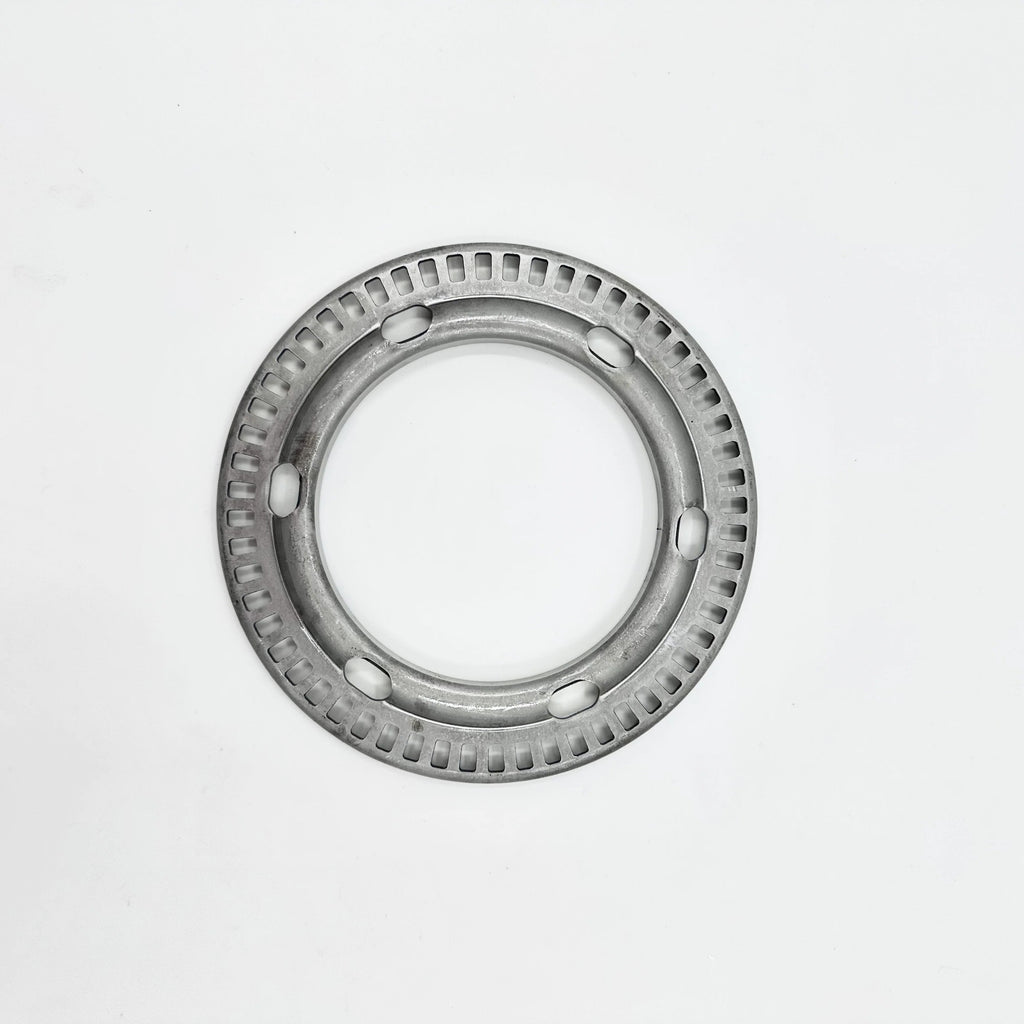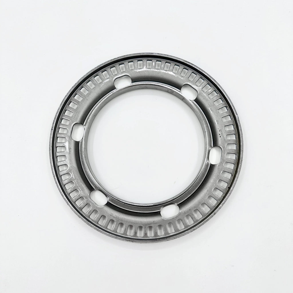 This precision-engineered Rotor Sensor ABS ring is specifically designed for front wheel applications in NRR NPR NPR-HD and NQR vehicles equipped with 4JJ1 3.0L, 4HE1 4.8L, or 4HK1 5.2L engines from 2007-2024 models. The robust construction features a distinctive perforated ring design with strategically placed mounting holes. This sensor ring plays a crucial role in the anti-lock braking system, providing accurate wheel speed data for optimal braking performance. The durable construction and precise engineering ensure reliable operation under various driving conditions. The component's distinctive notched pattern allows for consistent signal generation, while its robust build quality makes it suitable for heavy-duty commercial applications. This replacement part is designed to meet exact specifications for seamless integration with your vehicle's existing ABS system.